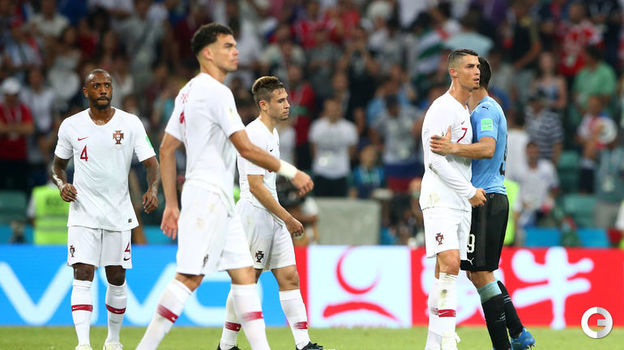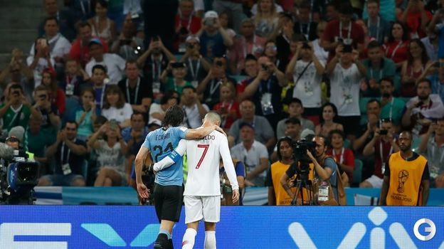 Сборная Уругвая в матче 1/8 финала чемпионата мира победила Португалию (2:1). Дублем в составе южноамериканцев отметился Эдинсон Кавани, который не смог доиграть встречу из-за травмы и был заменен. У португальцев отличился Пепе.