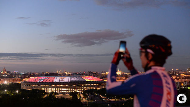 Сегодня в Лужниках на главной арене чемпионата мира по футболу 2018 года прошла церемония объявления маршрута Тура Кубка чемпионата мира. На крыше реконструированного стадиона после заката спроецировали маршрут движения и символику главного турнира планеты. Кубок мира перед ЧМ-2018 проведет по 24 городам России.