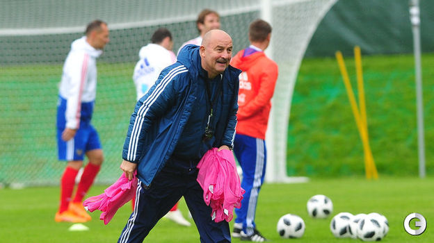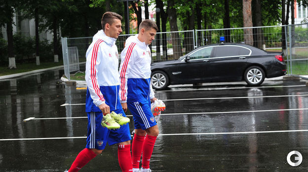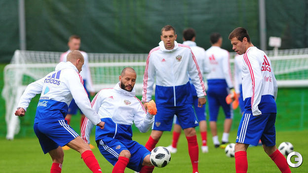 Сборная России провела очередную тренировку в Новогорске. Команда работала в полном составе. Полузащитник Юрий Жирков, покинувший занятие накануне, вернулся в общую группу.