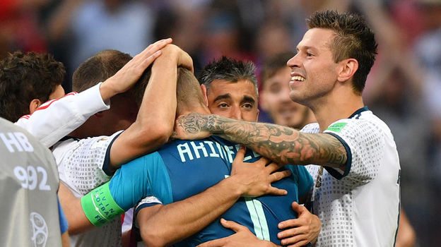 "Невероятный матч прошел в "Лужниках": автогол Игнашевича, пенальти Дзюбы, потом никакой игры вплоть до серии пенальти. А там Акинфеев превратился в героя, отбив два удара. Какое чудо! Русские поместили на постер чемпионата мира своего лучшего вратаря в истории: Льва Яшина. Нынешний голкипер, Игорь Акинфеев, никогда не рассматривался его достойным наследником. Но именно он вывел русских в четвертьфинал, после того, как команда не допустила ни одной ошибки за 120 минут и заслужила похвалу за отличную оборону".