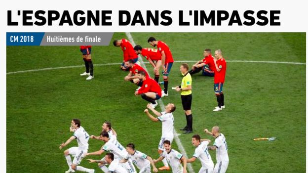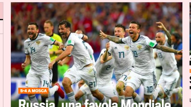 "Это сумасшествие! Российская сказка продолжается – после драматичной развязки в серии пенальти сборная выбила Испанию из турнира. Россия сотворила настоящую сенсацию. Ведь она считалась очевидным аутсайдером этого чемпионата мира. Конечно, сборная далека от того, чтобы показывать высокие скорости и играть на равных с ведущими командами. Но удивить топовые сборные она уже смогла. И это большой и, вероятно, главный сюрприз чемпионата мира".