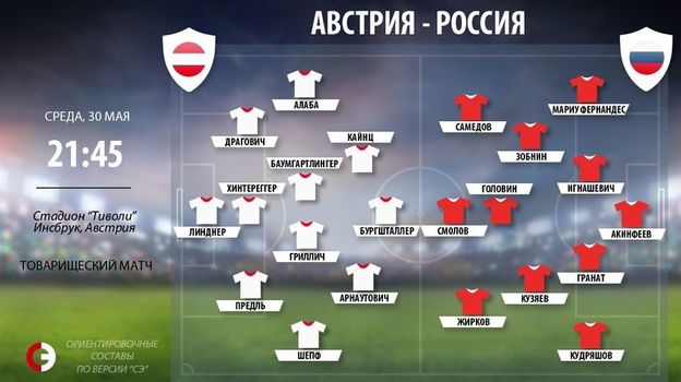 ТОВАРИЩЕСКИЙ МАТЧ. 30 мая. АВСТРИЯ – РОССИЯ. 21.45 (мск)