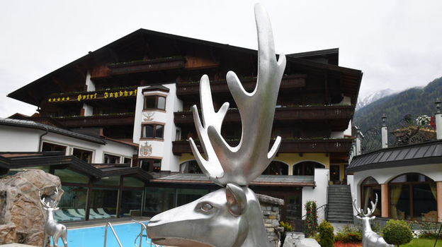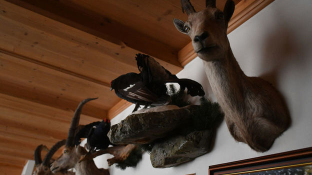 Jagdhof переводится как "охотничий двор". Символ отеля – олень с большими рогами. Олени – везде, и вообще тут все посвящено охоте. В коридоре, ведущем к лифту и номерам – фотографии охотников и добытые ими трофеи: чучела горных козлов, баранов и тетеревов, а также чьи-то шкуры.