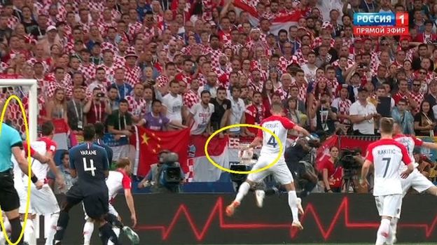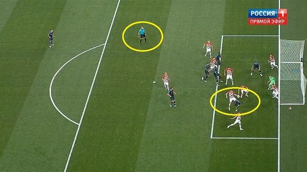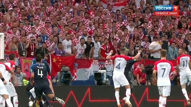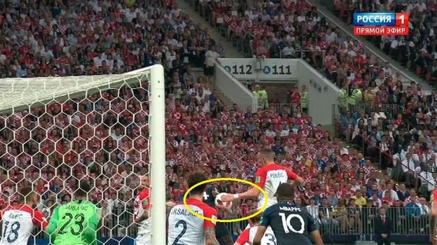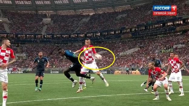 33:37. В штрафной площади команды Хорватии Блез Матюиди пытался сыграть головой, наклонился – мяч полетел в сторону Ивана Перишича, который сделал движение левой рукой, опустил ее и попал по мячу. Несколько французских игроков побежали к судье, показывая, что была игра рукой.