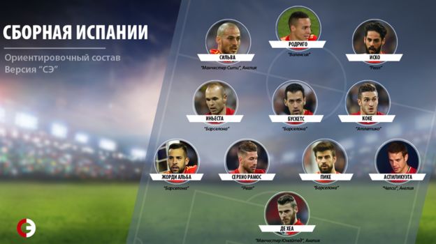 Проще попытаться сосчитать игроков, не имеющих звездного статуса, хотя и среди запасных они окажутся в меньшинстве. Бесподобный обладатель "Золотой перчатки" английского чемпионата Де Хеа в воротах, вечные Пике с Рамосом в центре обороны, один из лучших чернорабочих мирового футбола Бускетс… Список можно продолжать бесконечно, не забыв, что не всегда попадают в состав люди калибра Тиагу Алькантары, Сауля и Асенсио. Особняком же в этой сборной стоят настоящие футбольные кудесники в лице Давида Сильвы, Иньесты и ставшего одной из главных звезд обновленной команды Иско. Вместе с Коке эти люди делают игру.