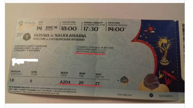 – Всем привет. 14.06.2018 состоялся матч-открытие чемпионата мира по футболу на стадионе Лужники. На данное мероприятие у моего свекра был приобретен билет.
