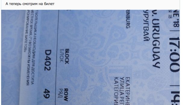 – Вчера с женой поехали на футбол Египет – Уругвай. Билеты были куплены еще в октябре, а привезли их в мае. И буквально пару дней назад на почту приходит сообщение – типа какие-то проблемы с билетами, обратитесь в билетный центр. Ну ладно, перед матчем зашли в центр, там что-то долго не могли понять, говорят, один билет аннулирован. Короче, послали нас в другой билетный центр около стадиона, сказали, там решат проблему. Пришли. А там такая же история, сказали идти на стадион, там разберутся. Ну ок. На входе в стадион тоже не смогли ничего сказать, пропустили так (спасибо большое дяденьке в костюме). На втором пропускном пункте тоже пропустили (и им спасибо). Приходим на свои места, и .....