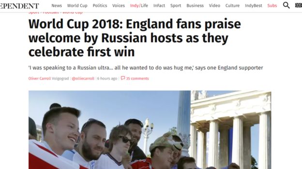 The Independent приводит искреннее удивление болельщиков сборной Англии, которые не ожидали такой потрясающей, уважительной и дружелюбной атмосферы. Даже те болельщики, которые участвовали в массовых столкновениях с россиянами два года назад на чемпионате Европы в Марселе, сейчас вспоминают о тех событиях с улыбкой.