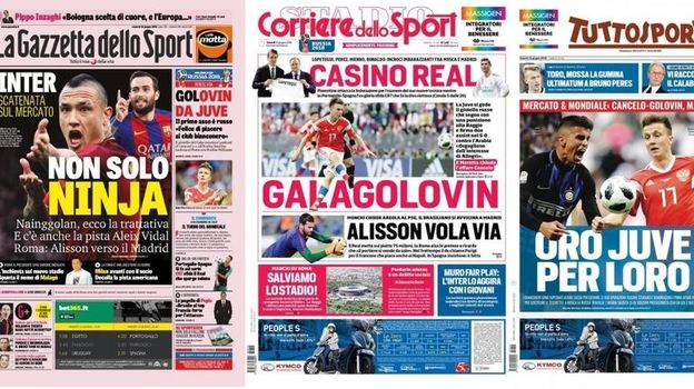 Вчера итальянские газеты La Gazzetta dello Sport, Corrierre dello Sport, Tuttosport вышли с фото Головина на обложке. В последние дни активно обсуждается возможный переход футболиста в "Ювентус", а испанские СМИ сообщают об интересе к нему со стороны "Барселоны".