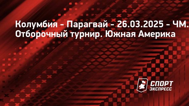 "СЭ" рад приветствовать всех любителей футбола! Здесь вас ждет онлайн-трансляция матча Колумбия – Парагвай . ЧМ. Отборочный турнир. Южная Америка, Отборочный турнир, ответный матч. Матч пройдет 26 марта 2025 года на стадионе Метрополитано Роберто Мелендес (Барранкилья, Колумбия). Начало - в 03:00 по московскому времени.