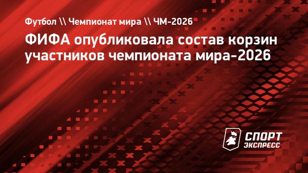 Международная федерация футбола (ФИФА) опубликовала составы четырех корзин перед жеребьевкой чемпионата мира 2026 года, которая пройдет 5 декабря.