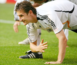 Форвард сборной Германии Мирослав Клозе может не выйти на поле в субботнем матче за третье место ЧМ-2006 против Португалии. По словам лучшего на данный момент бомбардира турнира (Клозе с пятью голами опережает ближайших преследователей на два мяча), он все еще испытывает боли в икроножной мышце и готов к тому, что за последней игрой немецкой команды на чемпионате ему придется наблюдать со стороны. Как сообщает Reuters, исключено появление на поле основного центрального защитника бундестим Пера Мертесакера, которому на этой неделе предстоит операция на ноге. |