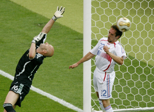 На 19-й минуте финального матча ЧМ-2006 сборная Италии сравняла счет. После подачи углового в исполнении Андреа Пирло мяч в ворота Фабьена Бартеза послал Марко Матерацци.