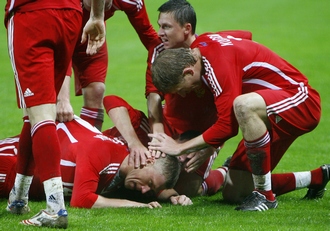 В первом матче отборочного турнира чемпионата мира-2010 сборная России на переполненной столичной арене "Локомотив" выиграла у Уэльса. Победный гол провел вышедший на замену во втором тайме форвард "Зенита" Павел Погребняк. |