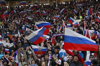 Сборная России путалась в ногах и мыслях - однако же забила еще раз. И выяснилось, что флажок есть в каждых российских руках - зрелище фантастическое. Азербайджанские полотнища, обессилев, траурно повисли в ответ. Кто их осудит? |