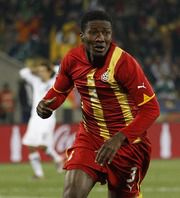 Нападающий сборной Ганы Асамоа Гьян получил повреждение на тренировке. Он травмировал лодыжку, готовясь сегодня к четвертьфиналу чемпионата мира со сборной Уругвая, сообщает Reuters. Гьян приложил лед к ноге и покидал занятие хромая. Однако в ганской сборной уверены, что он сможет сыграть с уругвайцами в пятницу.