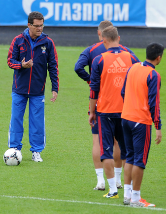 Сборная России перед отправлением в Израиль на второй матч отборочного турнира ЧМ-2014 проводит заключительную тренировку на стадионе имени Стрельцова. В занятии принимают участие все 23 футболиста, имеющиеся в распоряжении Фабио Капелло.