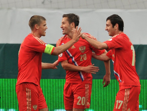 Главный тренер россиян Фабио Капелло остановил свой выбор на таком варианте: Акинфеев, Анюков, В. Березуцкий, Игнашевич, Д. Комбаров, Глушаков, Денисов, Широков, Быстров, Кержаков, Кокорин.