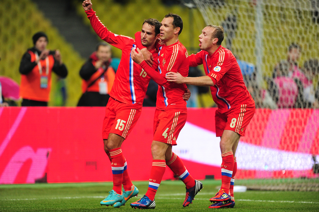 Россия: Акинфеев, Д. Комбаров, В. Березуцкий, Игнашевич, Ещенко, Денисов, Широков, Файзулин (Глушаков, 46), Самедов (Быстров, 62), Кокорин, Кержаков (Дзагоев, 79).