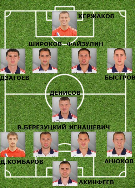 С другой стороны, если смотреть на что-то долго, возникновения мыслей той или иной глубины избежать невозможно. В данном случае – мыслей о стартовом составе. Возьму на себя смелость предположить: в случае, если бы играть понадобилось уже в понедельник вечером, Фабио Капелло предпочел бы схему 1-4-1-4-1 и остановил бы свой выбор на следующих игроках: Акинфеев – Анюков, В.Березуцкий, Игнашевич, Д.Комбаров – Денисов – Быстров, Широков, Файзулин, Дзагоев – Кержаков.
