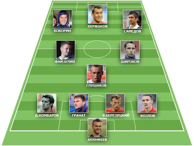 Фабио Капелло остановился на следующем сочетании: Акинфеев, Козлов, В. Березуцкий, Гранат, Д. Комбаров, Широков (к), Глушаков, Файзулин, Самедов, Кержаков, Кокорин. В заявку не вошел Шатов.