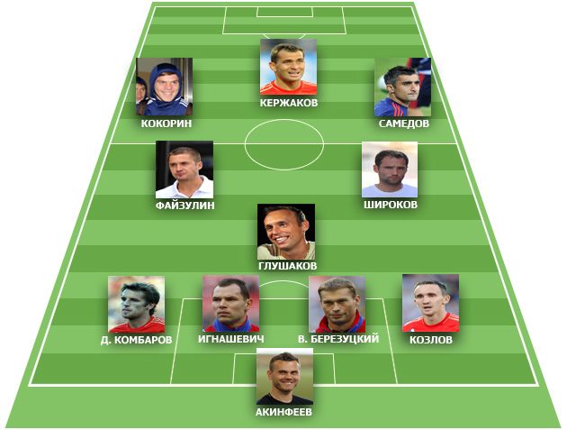 Главный тренер сборной России Фабио Капелло назвал состав на матч отборочного турнира ЧМ-2014 против Азербайджана. На поле выйдут 10 из 11 футболистов, игравших в матче с Люксембургом (4:0). Как и предполагал "СЭ", единственным изменением стала замена Владимира Граната на отбывшего дисквалификацию Сергея Игнашевича. Вне заявки остался Евгений Макеев. Напомним, что в Баку не полетел Юрий Жирков, получивший травму в игре с Люксембургом. Состав сборной России: Акинфеев, Козлов, В. Березуцкий, Игнашевич, Д. Комбаров, Глушаков, Файзулин, Самедов, Широков (к), Кокорин, Кержаков.
