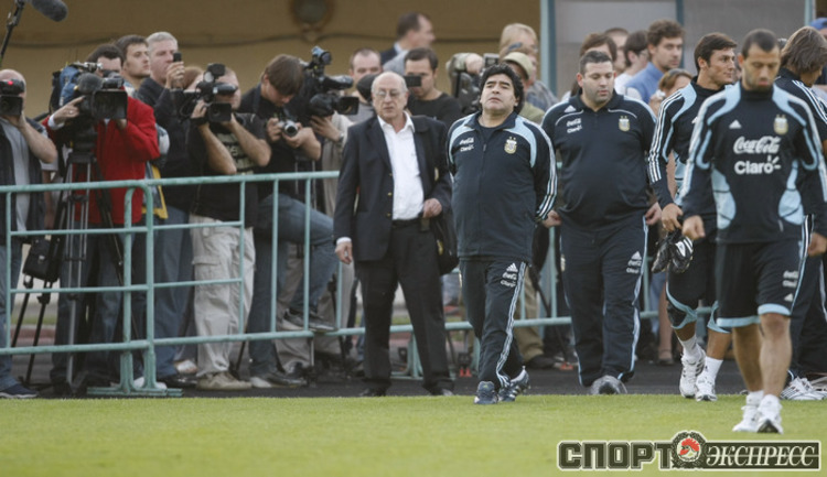 Диаего Армандо МАРАДОНА провел тренировку сборной Аргентины в Москве. Фото Александр ВИЛЬФ, "СЭ"