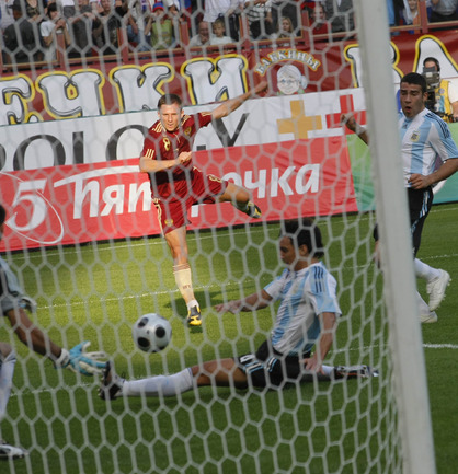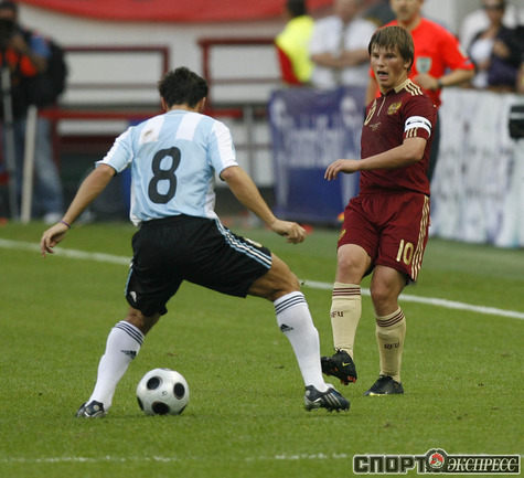 Сборная России провела последнюю боевую проверку перед сентябрьскими матчами отборочного турнира чемпионата мира с Лихтенштейном и Уэльсом. На стадионе "Локомотив" бронзовые призеры Euro-2008 уступили одной из ведущих сборных мира - Аргентине - со счетом 2:3. Фото - Александр ФЕДОРОВ, "СЭ"