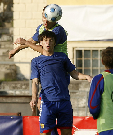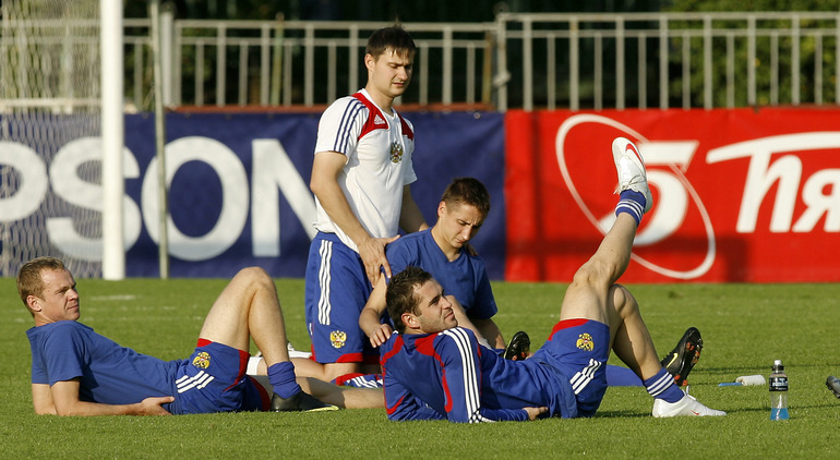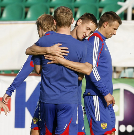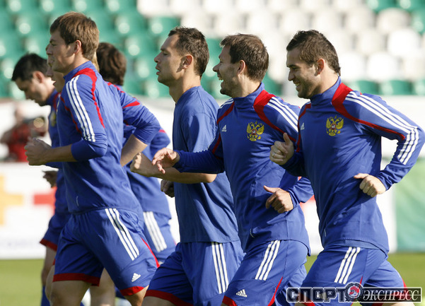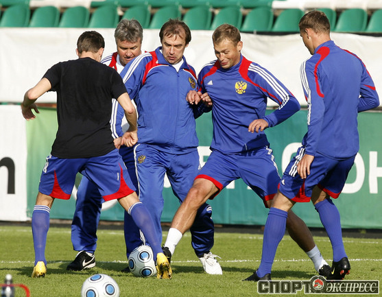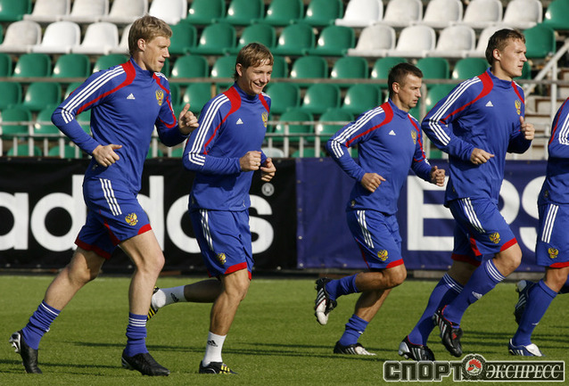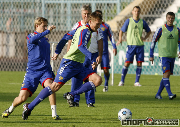 Сборная России на стадионе имени Стрельцова провела первую тренировку в рамках подготовки к матчам отборочного турнира чемпионата мира-2010 с Лихтенштейном и Уэльсом. Фото - Алексей ИВАНОВ, "СЭ"