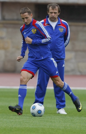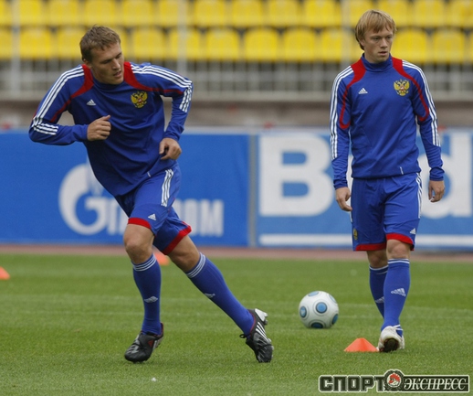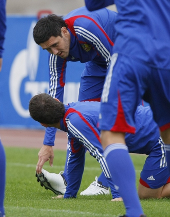 04.09.09 Тренировка сборной России на стадионе "Петровский" за день до отборочного матча с Лихтенштейном. Фото Александра ФЕДОРОВА, "СЭ"
