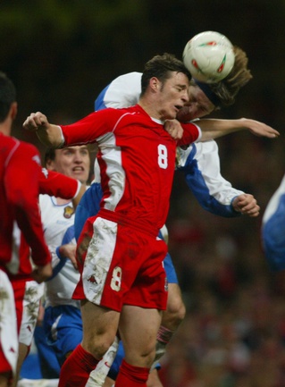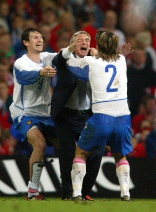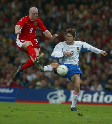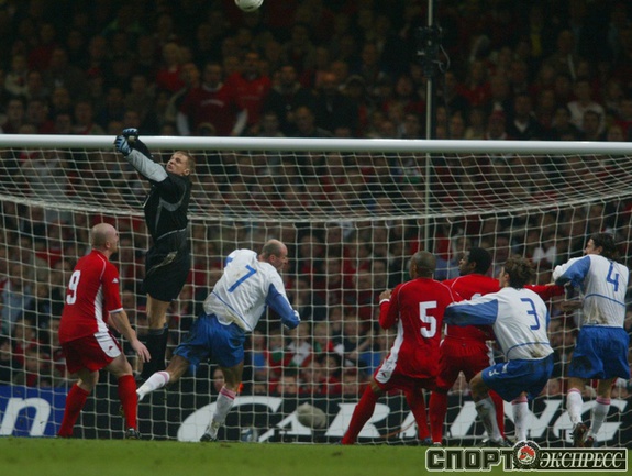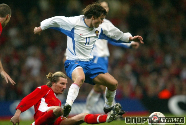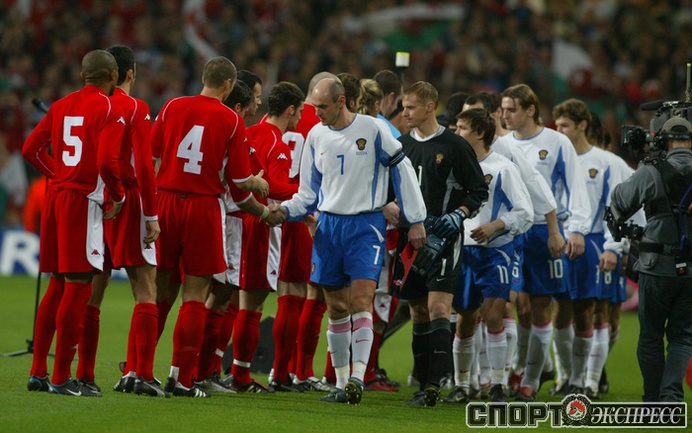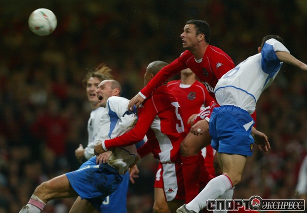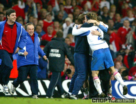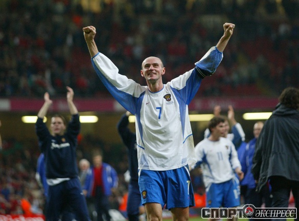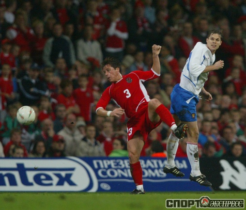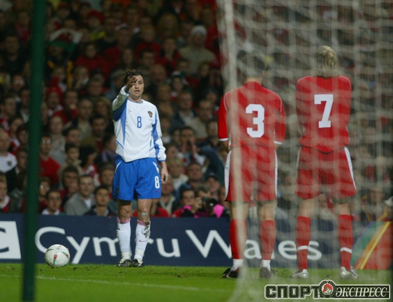 В ответном стыковом матче отборочного турнира ЧЕ-2004 сборная России, благодаря голу Вадима ЕВСЕЕВА, обыграла валлийцев и вышла в финальный турнир европейского первенства. Фото - Алесандр ФЕДОРОВ, "СЭ"
