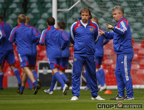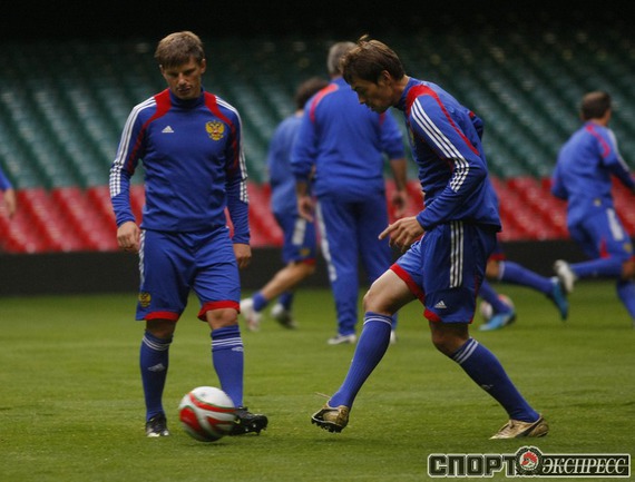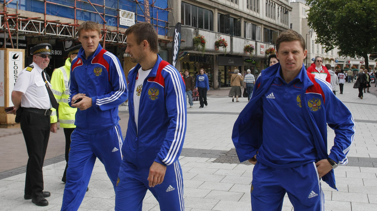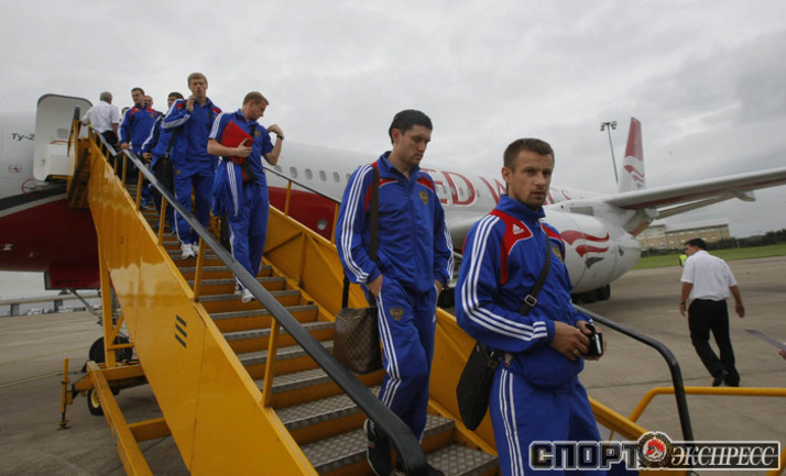 07.09.2009. Футболисты сборной России прибыли в Кардифф на отборочный матч чемпионата мира-2010 против Уэльса. Для сохранения шансов на первое место в группе подопечным Гуса Хиддинка необходимо побеждать. Фото - Александр ФЕДОРОВ, "СЭ"
