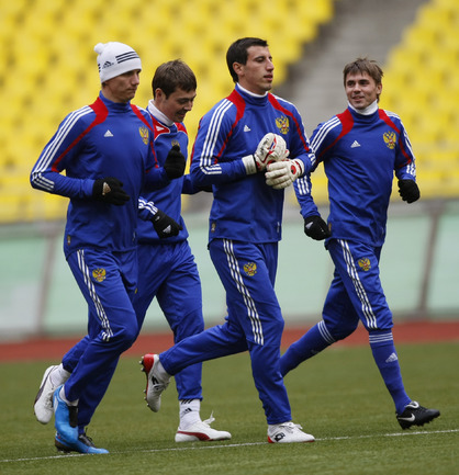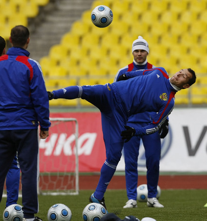 Москва, Лужники. Первая тренировка сборной России перед решающим матчем с Германией в отборочном турнире ЧМ-2010. Фото - Александр ФЕДОРОВ, "СЭ"