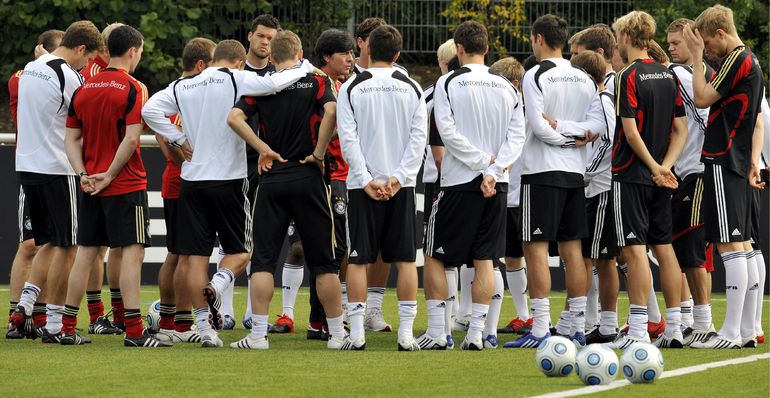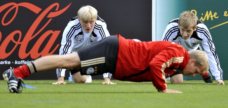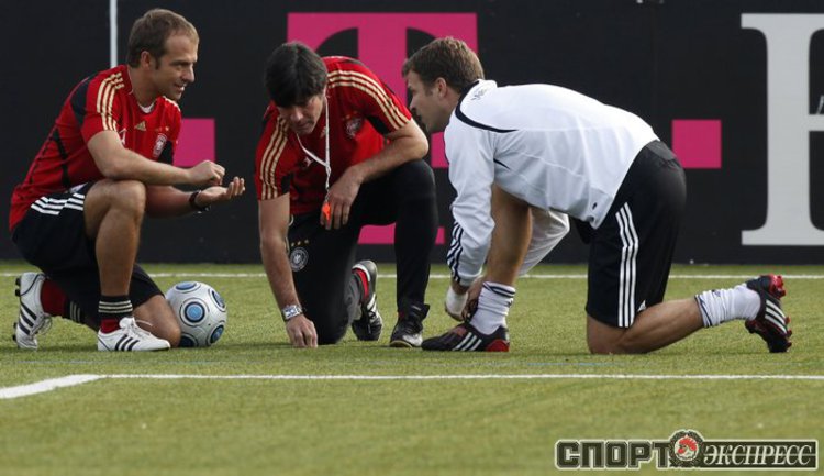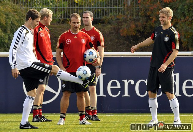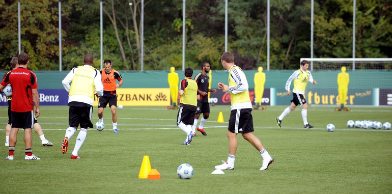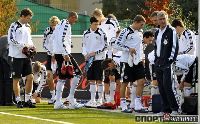Последняя тренировка сборной Германии в Майнце за день до отправления в Россию на решающий матч отборочного турнира ЧМ-2010. Фото - AFP, REUTERS