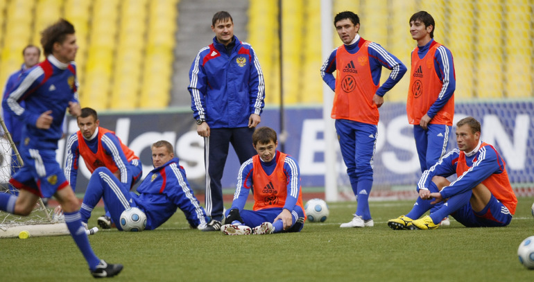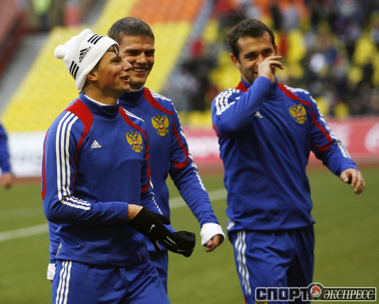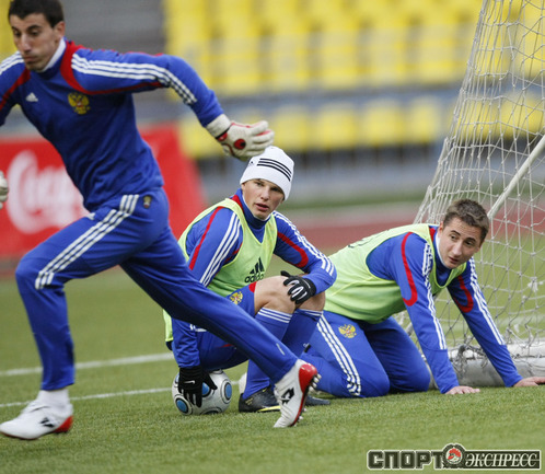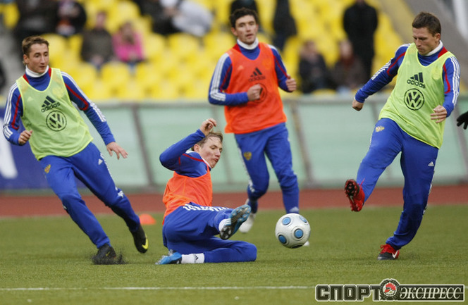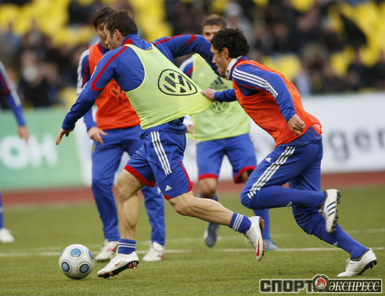 Сборная России провела вторую тренировку в Лужниках перед решающим матчем с Германией в отборочном турнире ЧМ-2010. Фото - Александр ФЕДОРОВ, "СЭ"