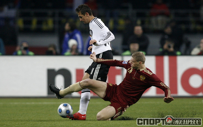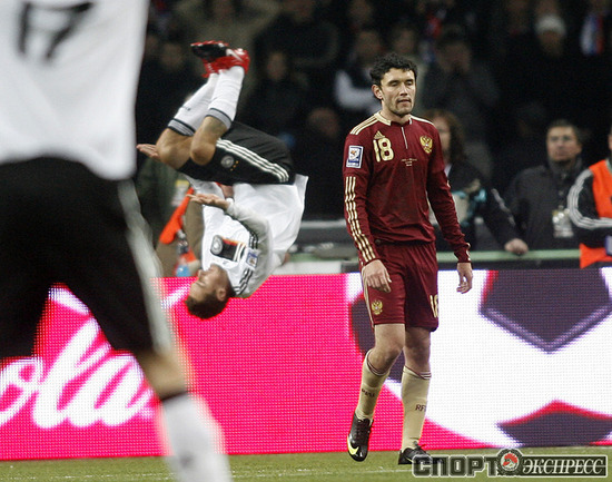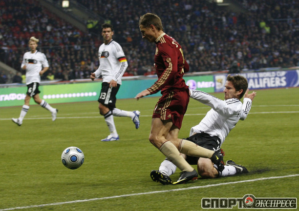 В решающем матче отборочного турнира чемпионата мира-2010 сборная России уступила в Лужниках Германии - 0:1. Команда Гуса Хиддинка не смогла взять реванш за прошлогоднее поражение в гостях. Фото "СЭ"