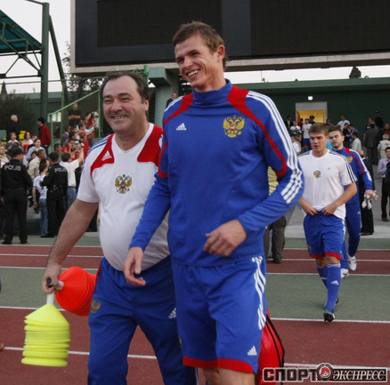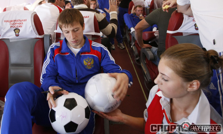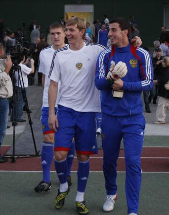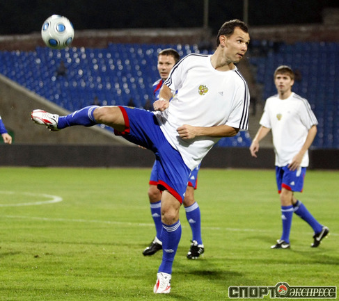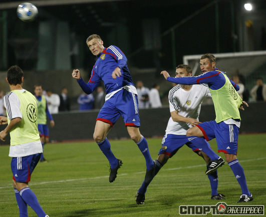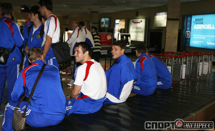 13.10.2009. Баку. Сборная России прилетела в Баку на отборочную игру ЧМ-2010 с Азербайджаном и провела предматчевую тренировку на арене имени Тофика Бахрамова. Фото - Александр ФЕДОРОВ, "СЭ"