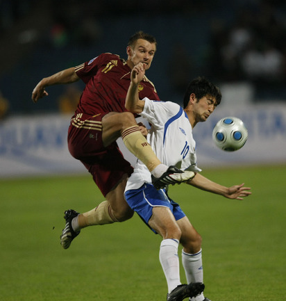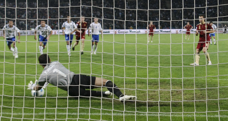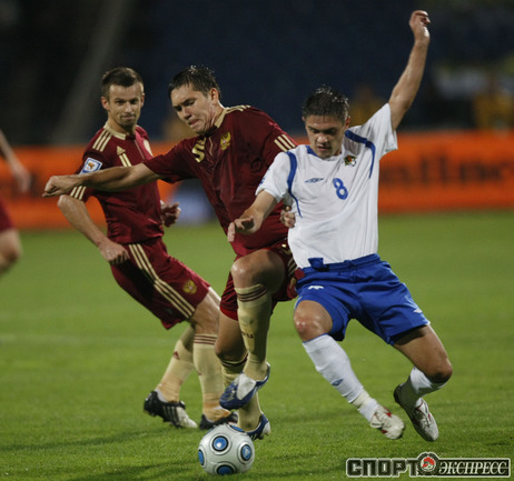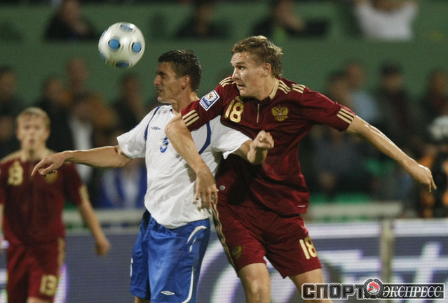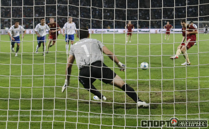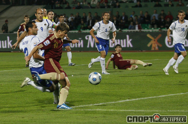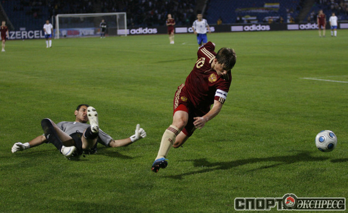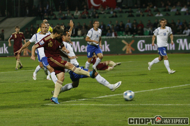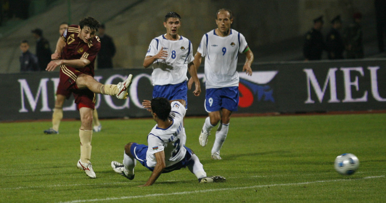 14.10.2009. Баку. Чемпионат мира. Отборочный турнир. Азербайджан - Россия - 1:1. В своем последнем матче в рамках отборочной группы 4 подопечные Гуса Хиддинка сыграли вничью с Азербайджаном. На гол Андрея Аршавина хозяева ответили точным ударом Вагифа Джавадова. Фото Александра ФЕДОРОВА, "СЭ"