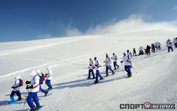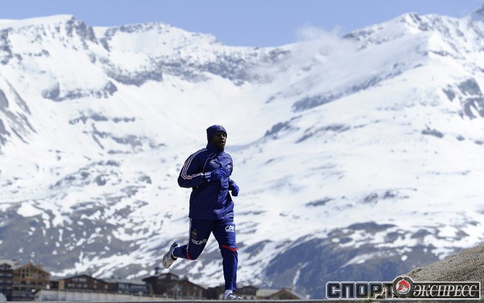 Сборная Франции по футболу готовится к чемпионату мира по футболу во Альпах. Игроки команды Раймона Доменека покоряют горный вершины ледника Тинь. Фото AFP