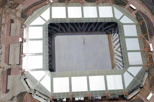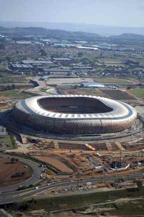 Стадионы чемпионата мира по футболу в ЮАР. Рустенбург - "РОЯЛ БАФОКЕНГ" (44 530 зрителей). Йоханннесбург - "ЭЛЛИС ПАРК" (61 639), "СОККЕР СИТИ" (88 460). Полокване - "ПИТЕР МОКАБА" (45 264). Кейптаун - "ГРИН ПОЙНТ" (66 005). Порт-Элизабет - "НЕЛЬСОН МАНДЕЛА БЭЙ" (69 957). Претория - "ЛОФТУС ФЕРСФЕЛД" (49 365). Нелспрейт - "МБОМБЕЛА" (43 589). Блумфонтейн - ""ФРИ СТЭЙТ" (45 058). Дурбан - "МОЗЕС МАБИДА" (69 9570. Матч открытия турнира и финальная игра пройдут на "СОККЕР СИТИ" в Йоханнесбурге. Фото REUTERS