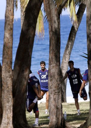2.06.2010. Сборная Франции по футболу тренируется на стадионе Мишеля Вольня, на французской заграничной территории Ла Рениона Жюна. Фото REUTERS и AFP