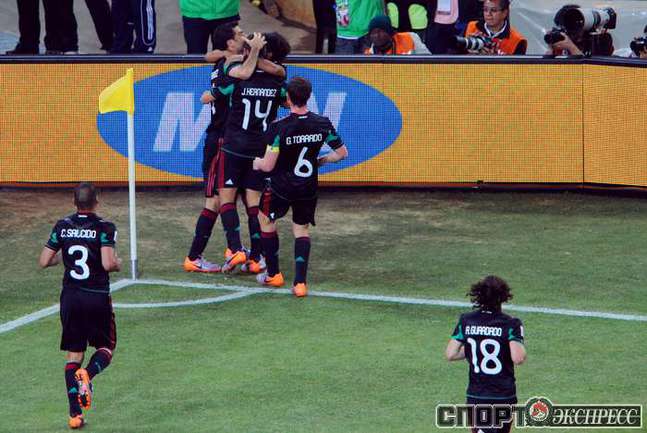 11 июня. Йоханнесбург. Чемпионат мира. Группа А. 1-й тур. ЮАР - Мексика - 1:1.Фото AFP
