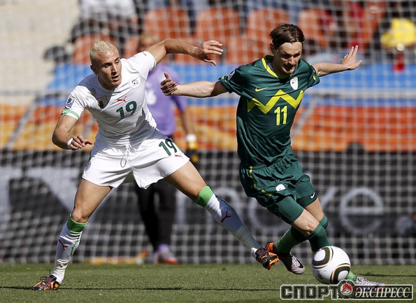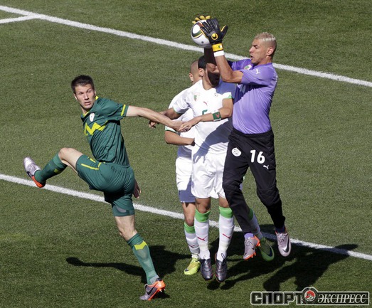 Чемпионат мира.Групповой турнир. 1-й тур. Группа C. Алжир – Словения – 0:1 (0:0). Гол: Корен, 79. Словенцы забили гол после ошибки вратаря соперника, не сумевшего отразить несильный удар Роберта Корена. Фото REUTERS