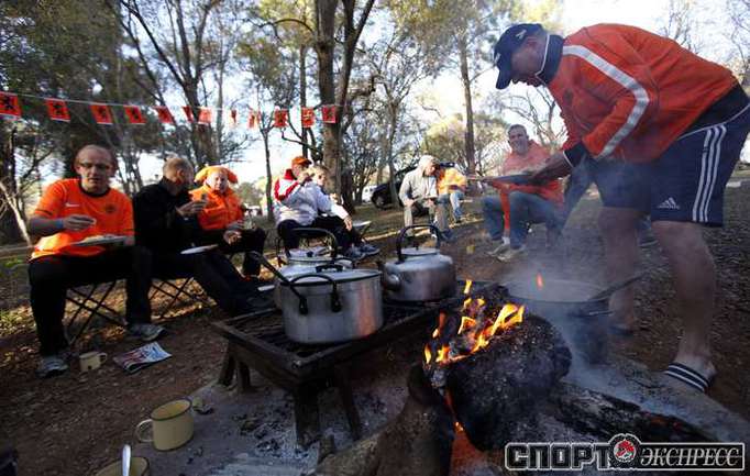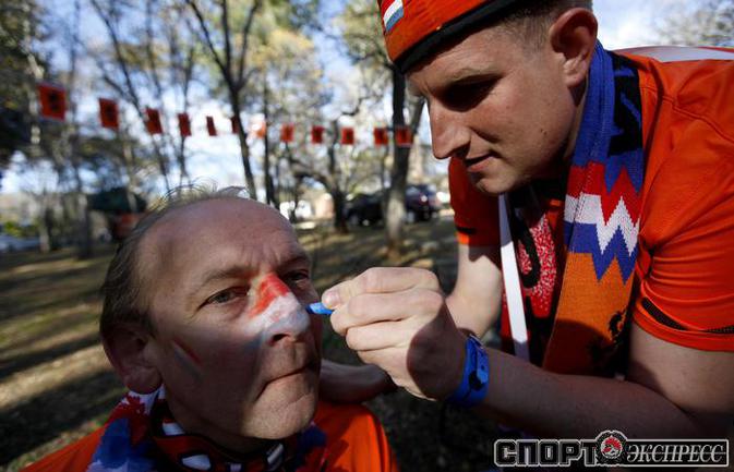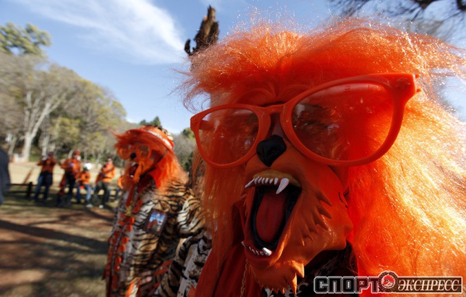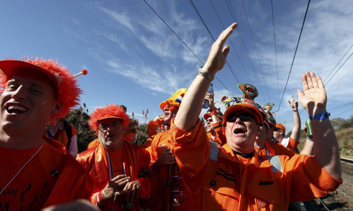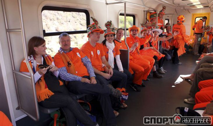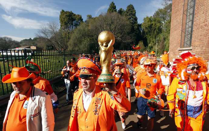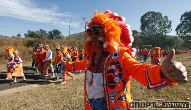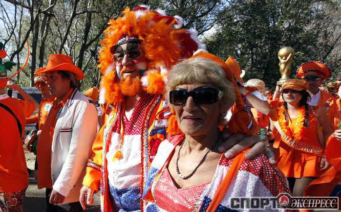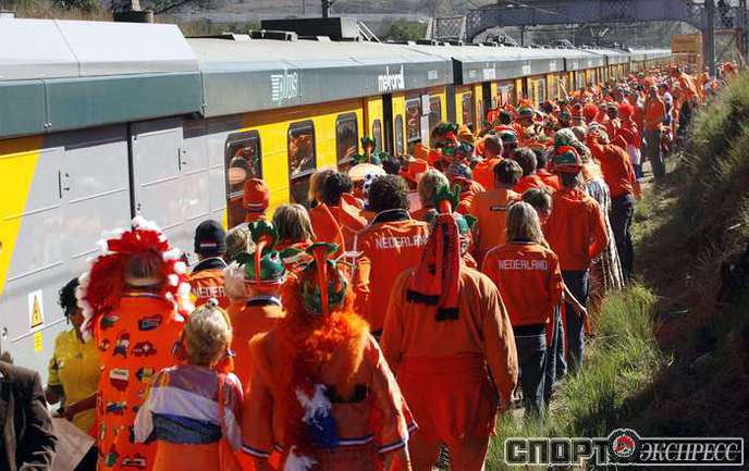 Перед матчем чемпионата мира по футболу между Голландией и Данией южноафриканский Йоханнесбург окрасился в оранжевые цвета. Толпы поклонников сборной Нидерландов наводнили город и его окрестности. Фото REUTERS
