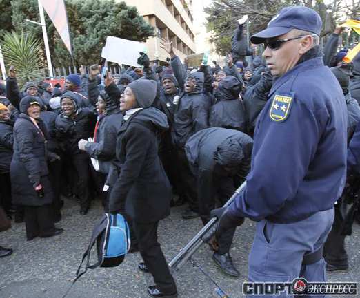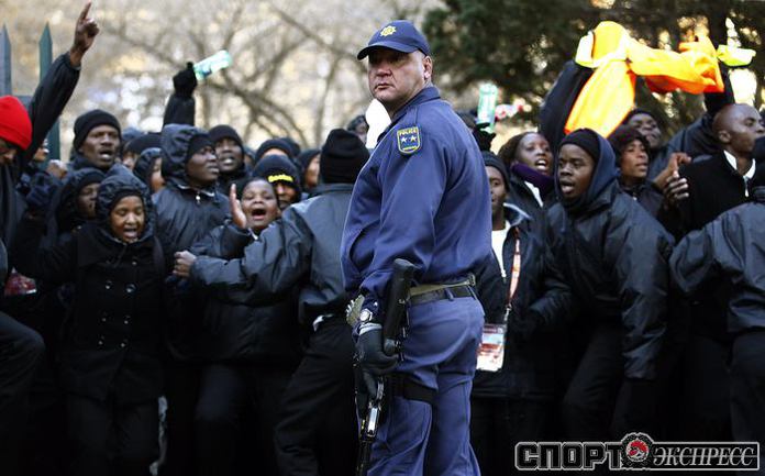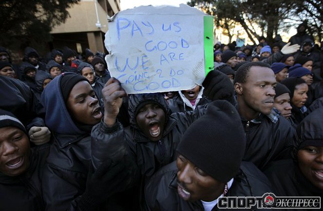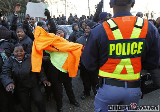 В Йоханнесбурге перед игрой сборной Бразилии с КНДР забастовали наемные сотрудники стадиона "Эллис Парк". Южноафриканские стюарды потребовали увеличения заработной платы. Фото REUTERS