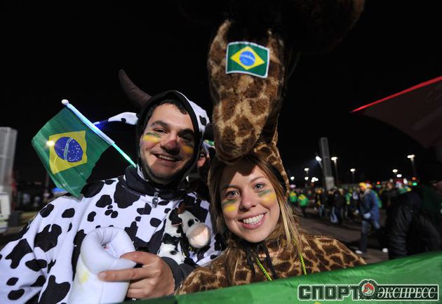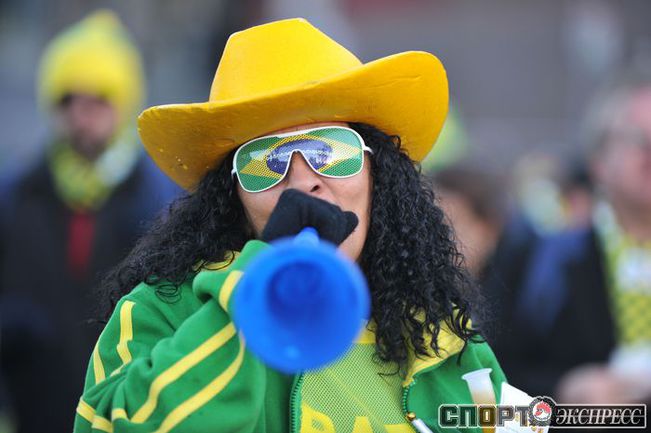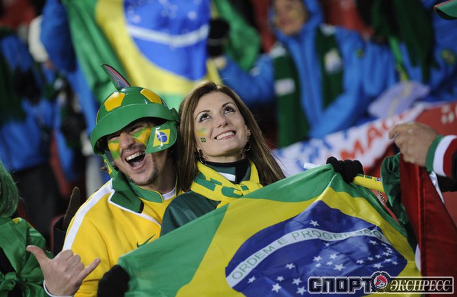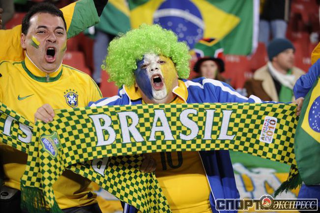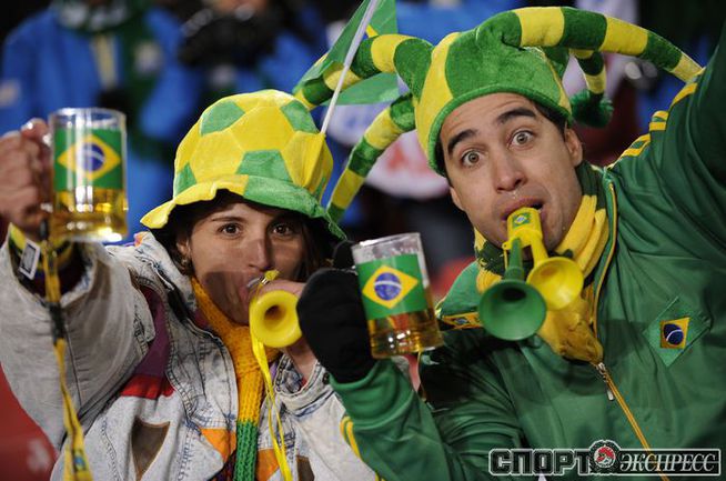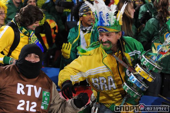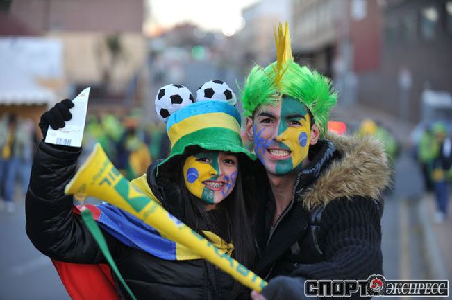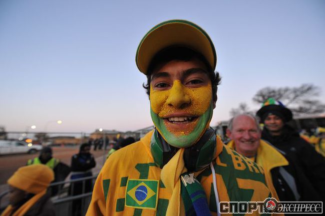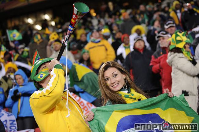 Чемпионат мира по футболу. Бразильские болельщики перед матчем сборной своей страны с КНДР на стадионе "Эллис Парк" в Йоханнесбурге. Фото AFP
