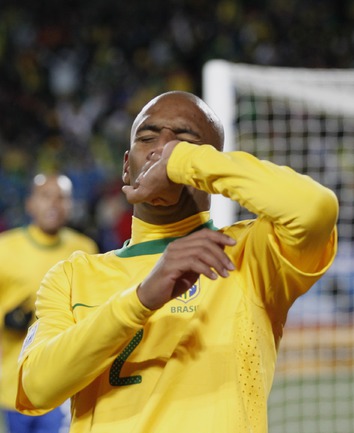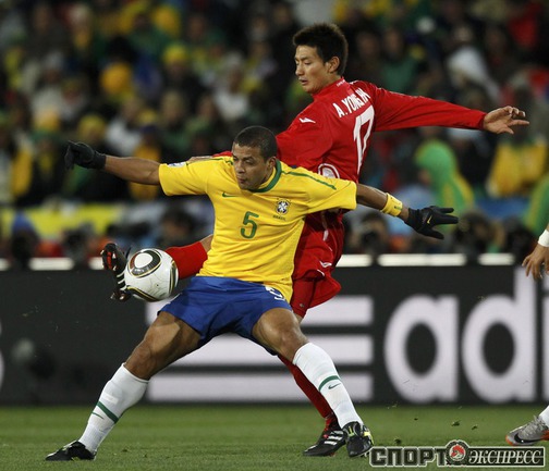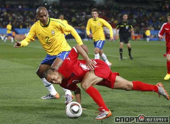 15.06.2010. Йоханнесбург. Бразилия - КНДР - 2:1 (0:0). Голы: Майкон, 55 (1:0). Элану, 72 (2:0). Чи Юн Нам, 89 (2:1). Фото REUTERS