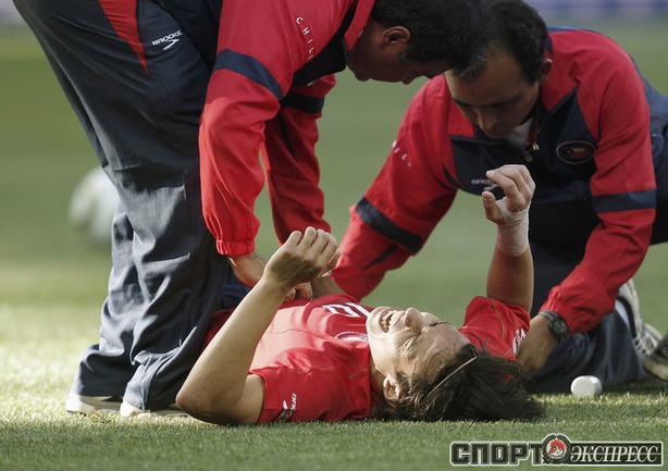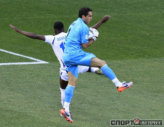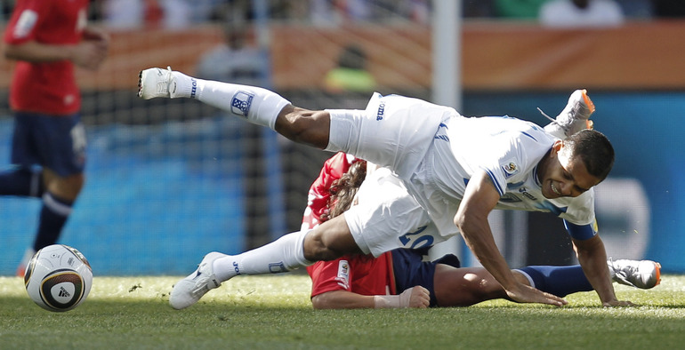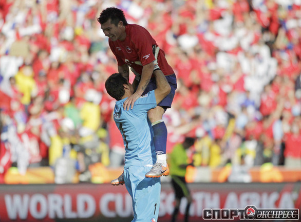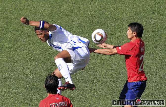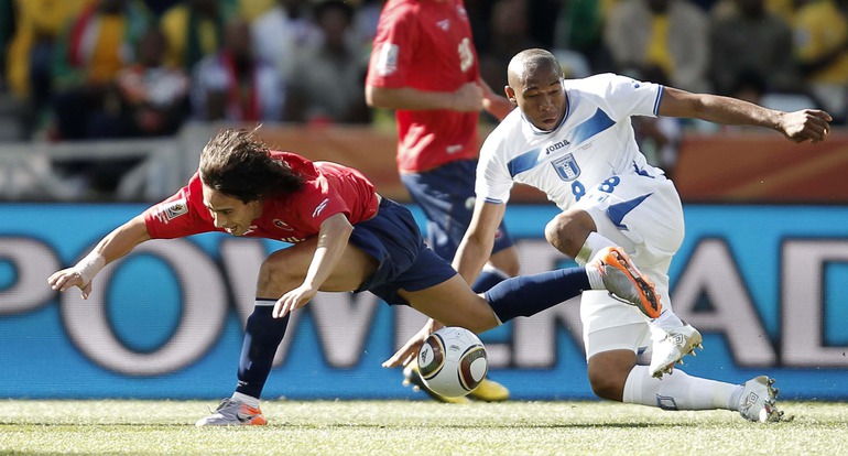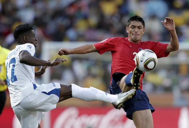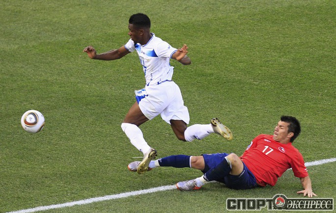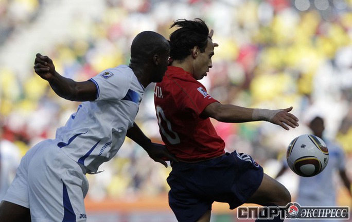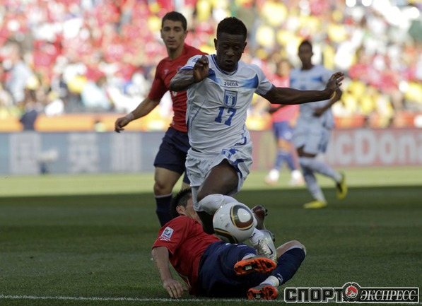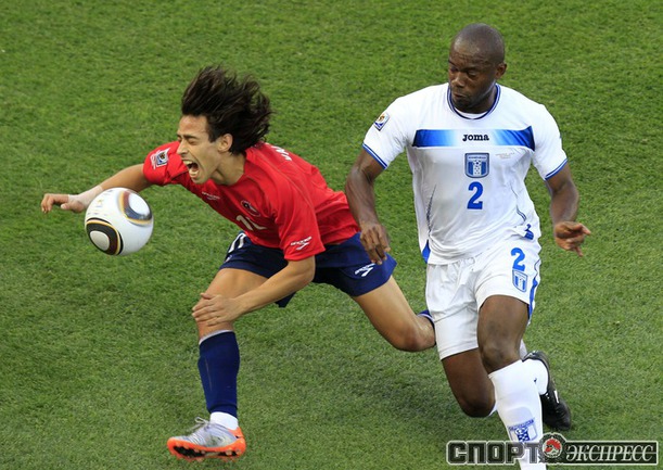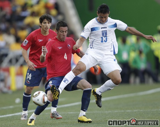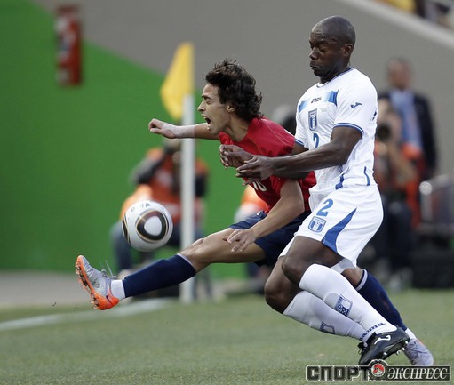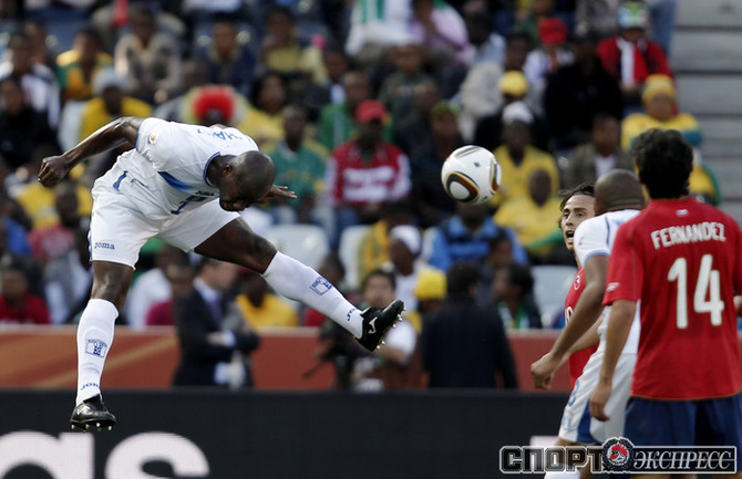Нелспрейт (ЮАР). Чемпионат мира. Групповой турнир. 1-й тур. Группа H. Гондурас - Чили - 0:1 (0:1). Гол: Босежур, 34. Армеец Марк Гонсалес выше на поле на 87-й минуте и успел нанести по воротам соперника три опасных удара. Фото REUTERS
