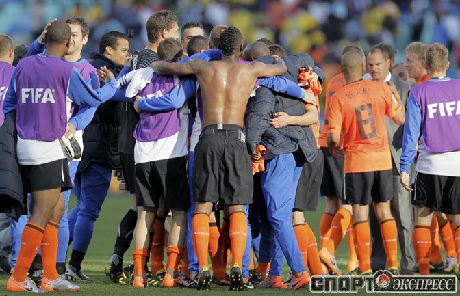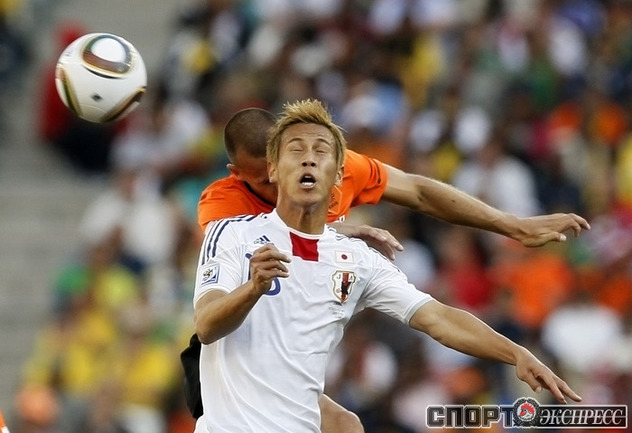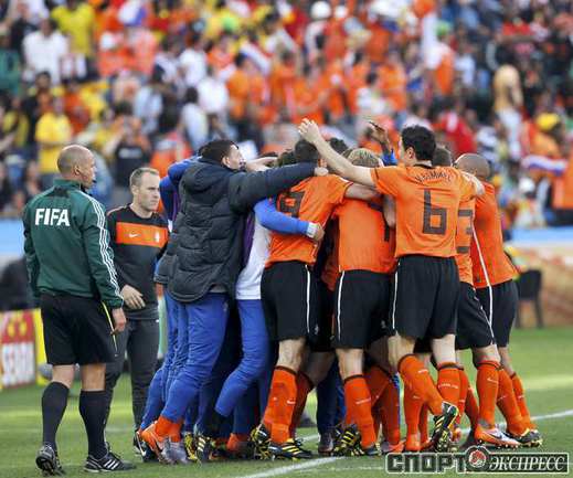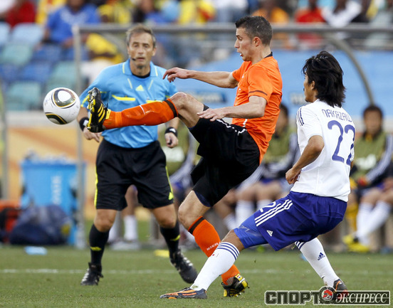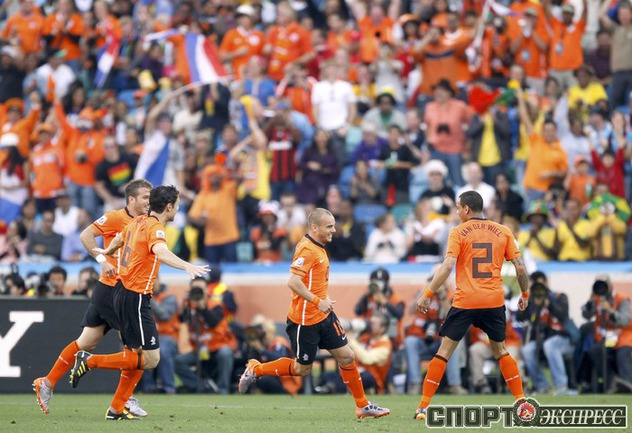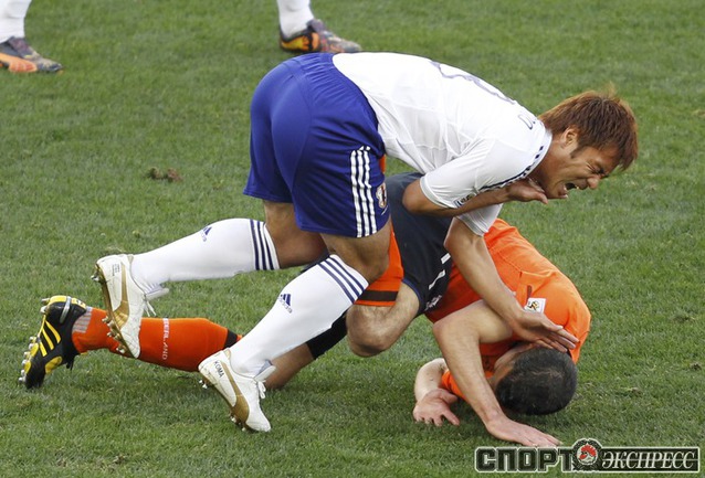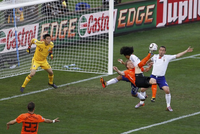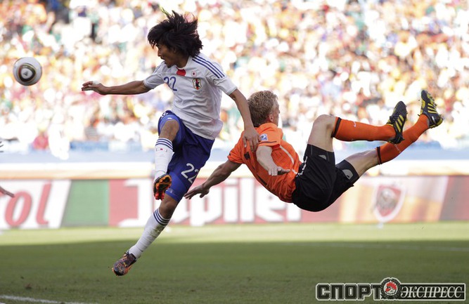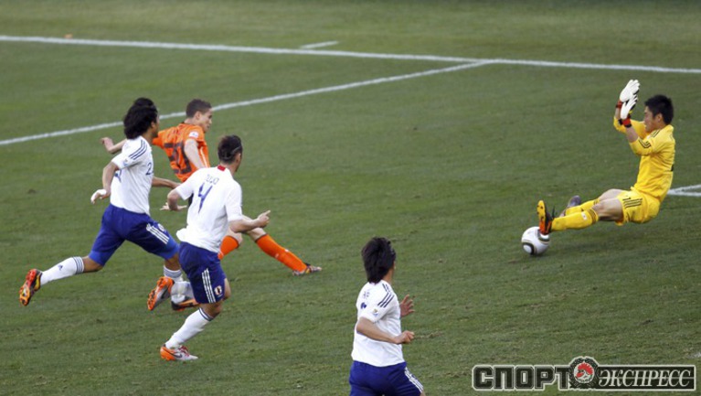 Дурбан (ЮАР). Чемпионат мира-2010. Групповой турнир. 2-й тур. Группа Е. Матч № 25. Голландия - Япония - 1:0. Гол: Снайдер, 53. Фото REUTERS