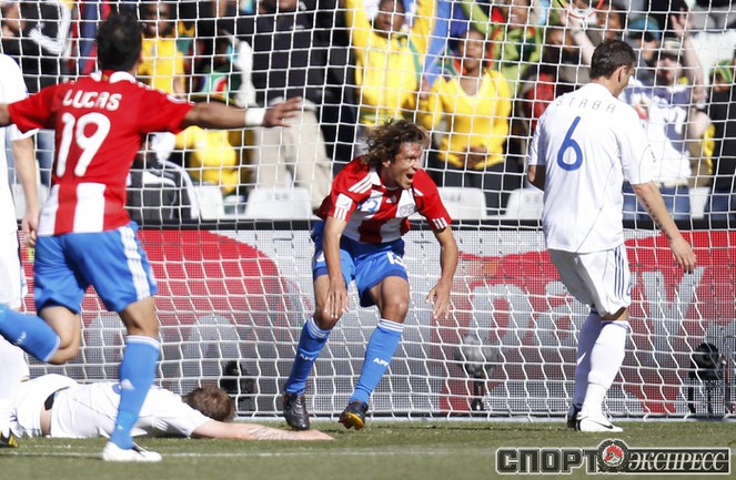 Чемпионат мира по футболу. Блумфонтейн (ЮАР). Групповой турнир. 2-й тур. Группа F. Словакия – Парагвай – 0:2 (0:1). Голы: Вера, 27 (0:1). Риверос, 86 (0:2). Фото REUTERS